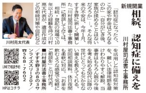 こんにちは。横浜市青葉区の川村屋司法書士事務所、司法書士の川村亮太です。